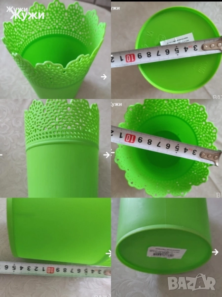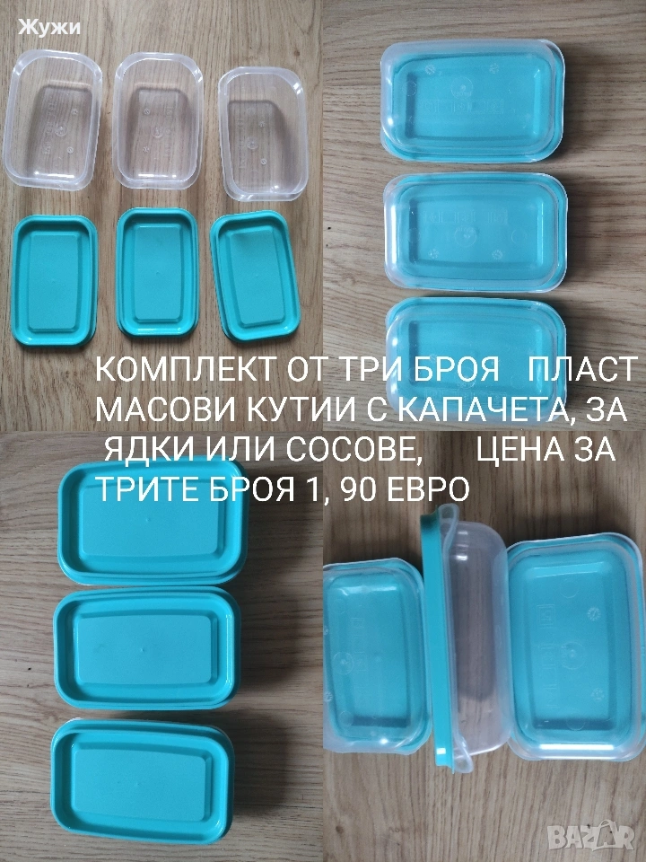 НОВ кухненски комплект от 4 броя цедки, с различна големина и различен цвят. цена 2,80 лв. Цената е за целия комплект. НОВИ захарнички комплект стъклени леки и удобни за употреба цена за двата броя 3,50 лв. НОВО сандъче за цветя има дадени размери Цена 2,50 лв. НОВА белачка за картофи, краставици и други , цена 2, 20 лв. НОВА яйцерезачка 2,20лв. НОВА кошница за щипки цена 3,20 лв. НОВА кашпа 2,50 лв. СЛЕДВАТ три снимки на нови лед фенери на последната има подробно описание цена за брой 4, 50 лв. НОВИ метални кути с капачета цена 2,50 лв за брой. СЛЕДВА нова статуетка има дадени размери Цена 9,90 лв.