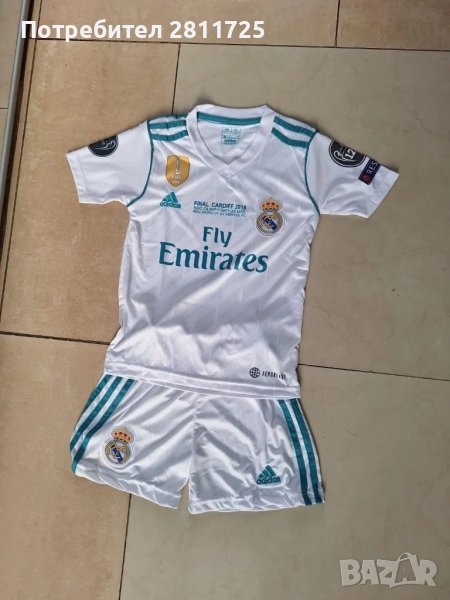 Продавам детски екип на футболната звезда Кристиано Роналдо в Реал Мадрид. Екипа е от финала в Кардиф 2018г срещу Ливърпул спечелен от Реал Мадрид с 3:1. Размери 104-116, 128,140,152, 164,176. Работим и с Еконт и със Спиди.