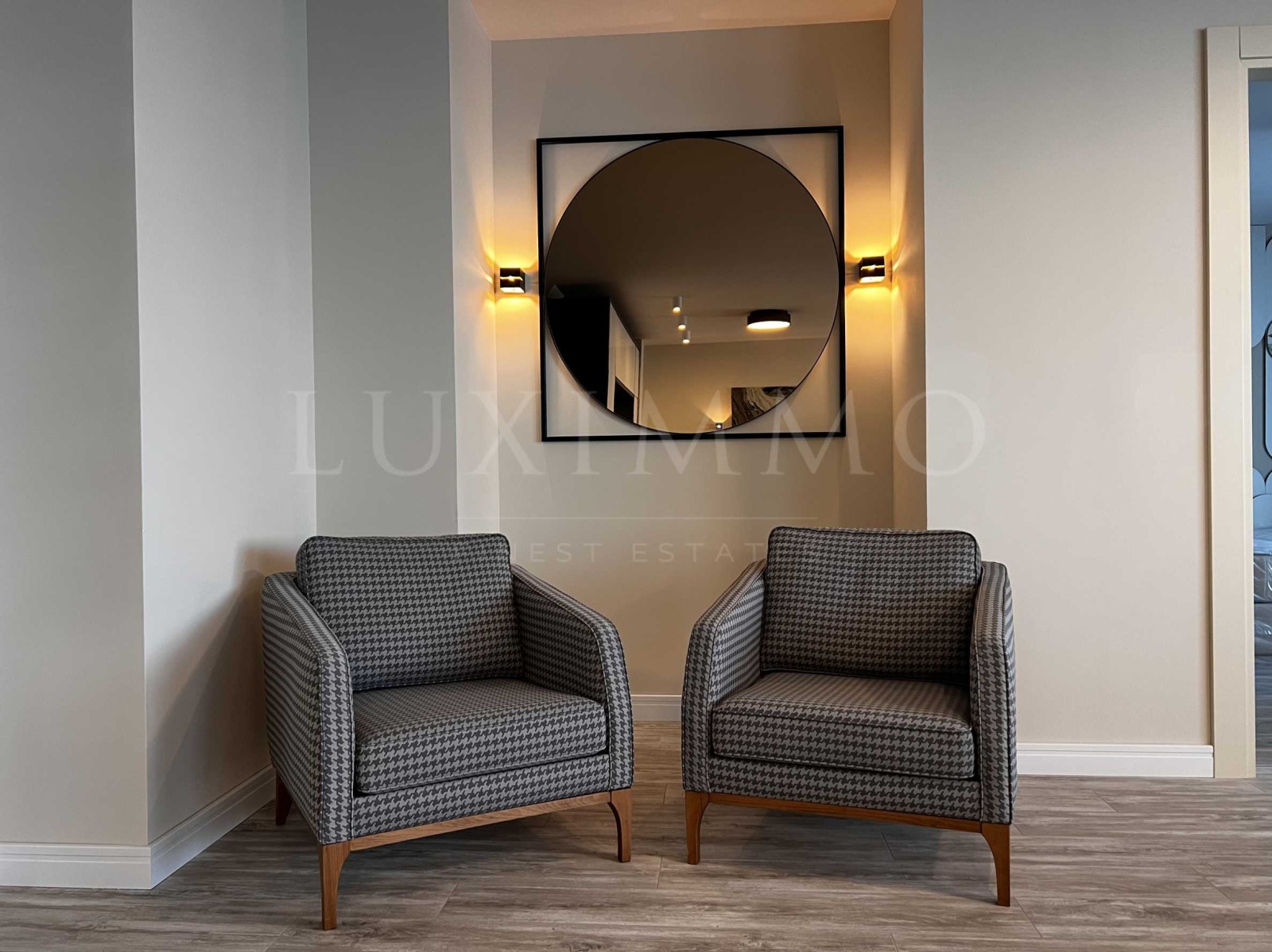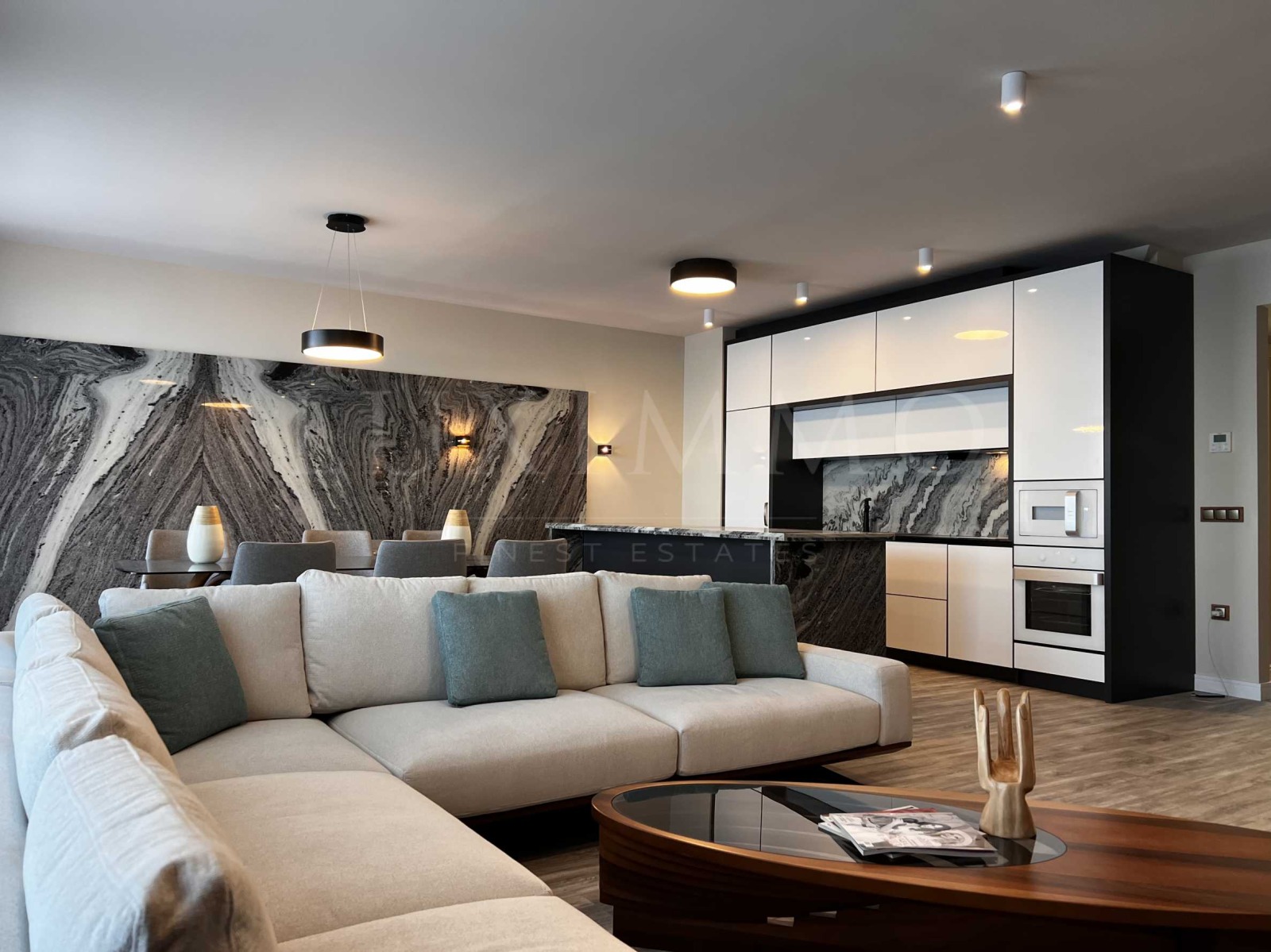 Апартаментът се продава с поръчково обзавеждане и висок клас оборудване.