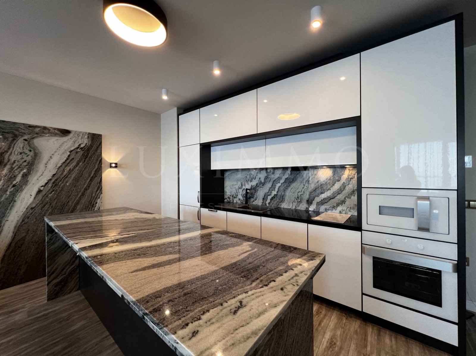Имотът предлага просторна всекидневна и кухня, изпълнени с индийски мрамор Riviera Grey.