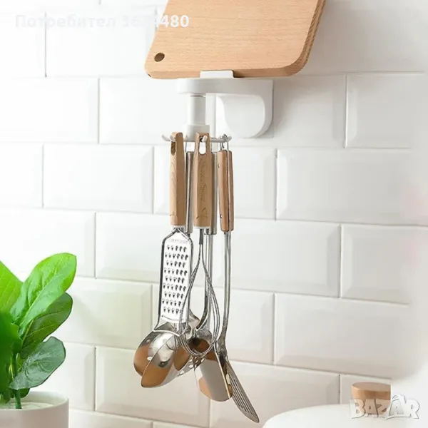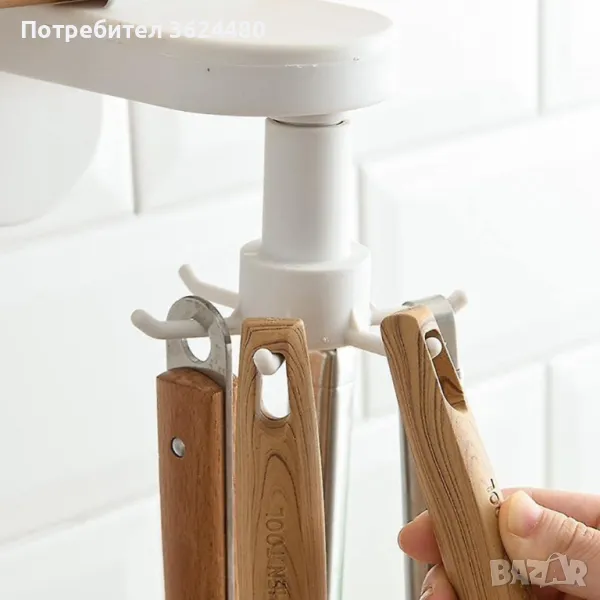 Самозалепваща въртяща се закачалка за кухненски прибори - стенна Самозалепваща въртяща се закачалка