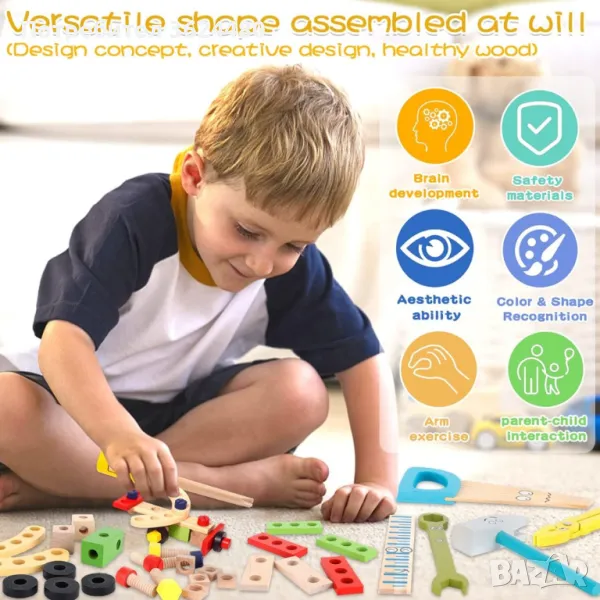 Здрави, безопасни и екологосъобразни. Всички инструменти са изработени от висококачествено дърво, което не само е здраво, но и екологично. Плюс, дизайнът ни, насочен към децата, гарантира нула болки, само уау-ове и ах-ове! Вие получавате спокойствие, докато те получават безопасно място, на което тяхната креативност може да разцъфти.