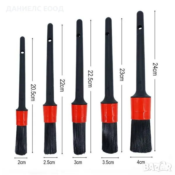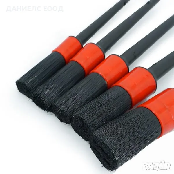 Този комплект от 5 броя четки за почистване на детайли е изключително подходящ за интериора на вашия автомобил, където има множество труднодостъпни места, фуги, неравности и фини детайли. Всяка от четките е с различен размер и ви позволява да преценявате коя е най-подходяща спрямо повърхността, която искате да изчистите. Стават за почистване и на други превозни средства, вкл. лодки и велосипеди, джанти, гуми, спици, скари, моторни отсеци, изпускателни накрайници, брони, подкалници, ходова част и много други.