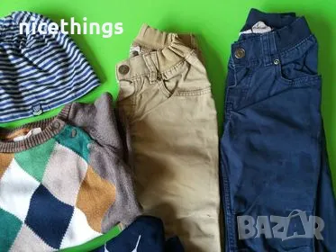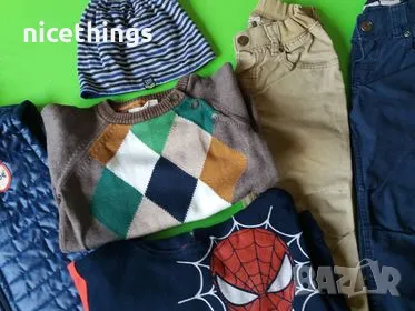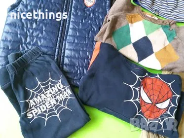 Голям лот запазени детски дрешки,размер 92(2 год) .Включва грейка практически е нова,памучна шапка,памучен анцуг Спайдърмен,пуловер Н§М и два памучни панталона Н§М .Цена за лота 10 лв
