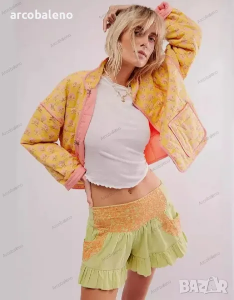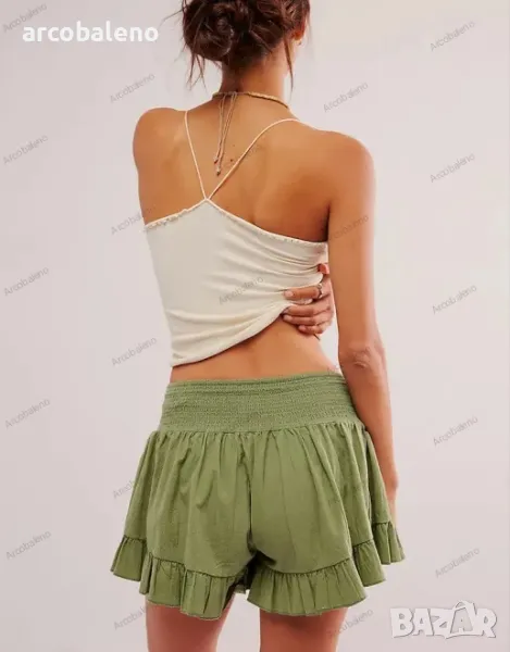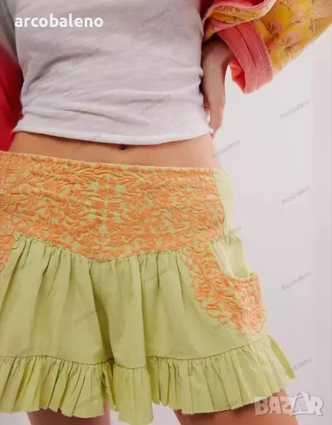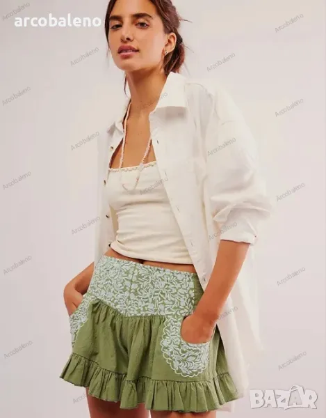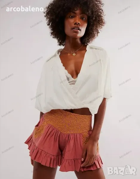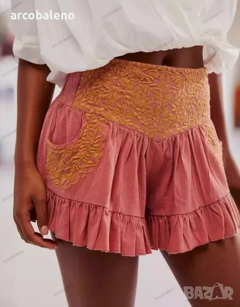 Дамски бродирани къси панталонки с волани и джобове, 3цвята