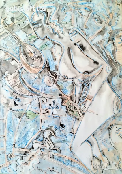 Смесена техника - туш, акварел, пастел, размер 49х34 см., размер с рамка 68х53 см.