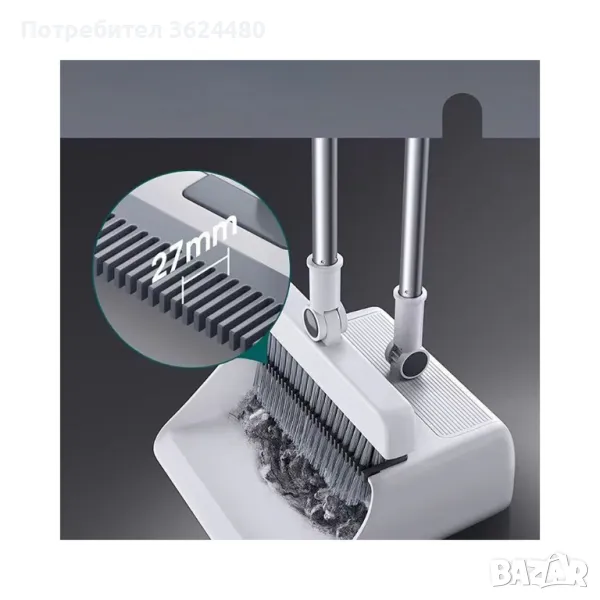 Комплектът е снабден с въртяща се глава, която ви позволява да достигнете до всеки ъгъл на вашия дом, което често е трудно с обикновените метли. Комплектът разполага с интелигентен дизайн, който позволява лесно съхранение. Метлата може да се закачи за дръжката на лопатката, правейки го компактен и идеален за малки пространства. За допълнително удобство, комплектът включва и универсална гумена метла, която не само премахва прах и косми, но и ефективно обработва течности.