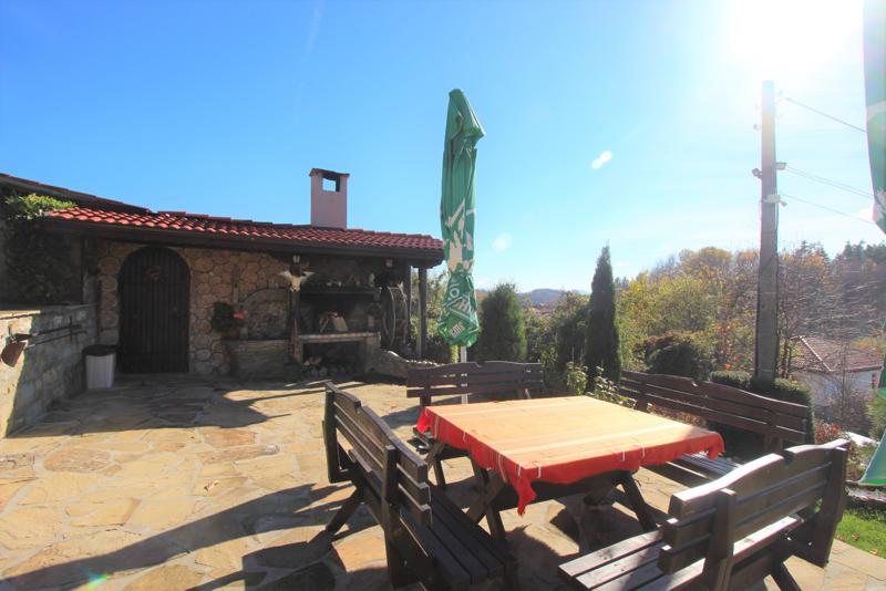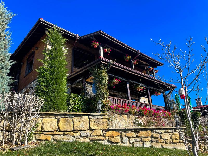 Имаме удоволствието да Ви предложим за продажба една невероятно красива, луксозна, новопостроена къща за гости със спираща дъха гледка. Имотът се намира в китно българско балканско селце, на 6 км от прекрасния гр. Трявна. Имотът включва двуетажна къща, басейн с джакузи и барбекю и дворна площ от 3 803 кв.м. Къщата е строена през 2020г. с разгърната застроена площ от 325 кв.м, южно изложение, красива архитектура, топло и хидроизолация, локално отопление и климатизация. Първи етаж разполага с покрита веранда, просторно помещение, което обединява кухня, трапезария, бар, камина и санитарен възел, а на втори етаж са разположени две спални помещения със собствен санитарен възел и две спални помещения с общ санитарен възел. Стаите разполагат с телевизор, климатик, хладилник, кафемашини, гардероб, допълнителни легла и прекрасни панорамни тераси. Имотът ни предлага още открит басейн с джакузи и подгряване на водата чрез соларни панели, паркинг за 5 автомобила, барбекю с пещ и