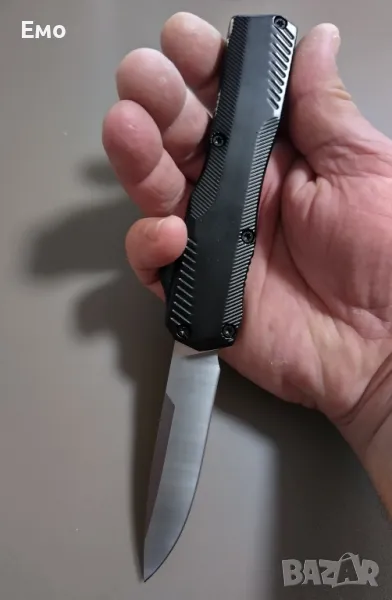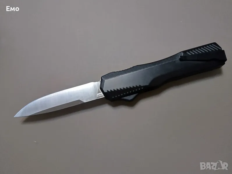 Ножа е уникален с много мощна автоматика и страхотно острие, без лого на компанията.