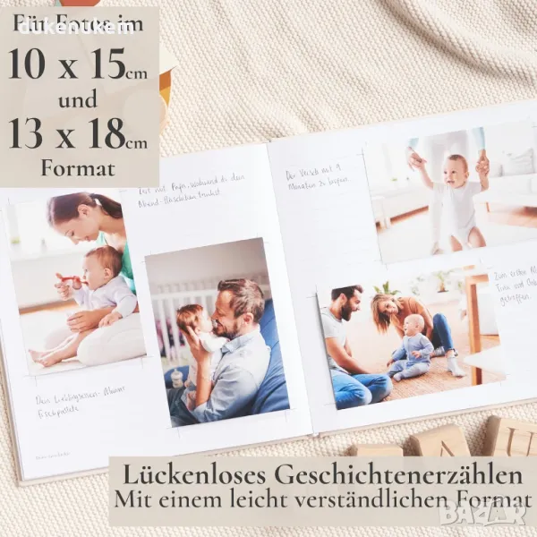 Мемори и фотокнига, която да проектирате сами от раждането до 5-годишна възраст.