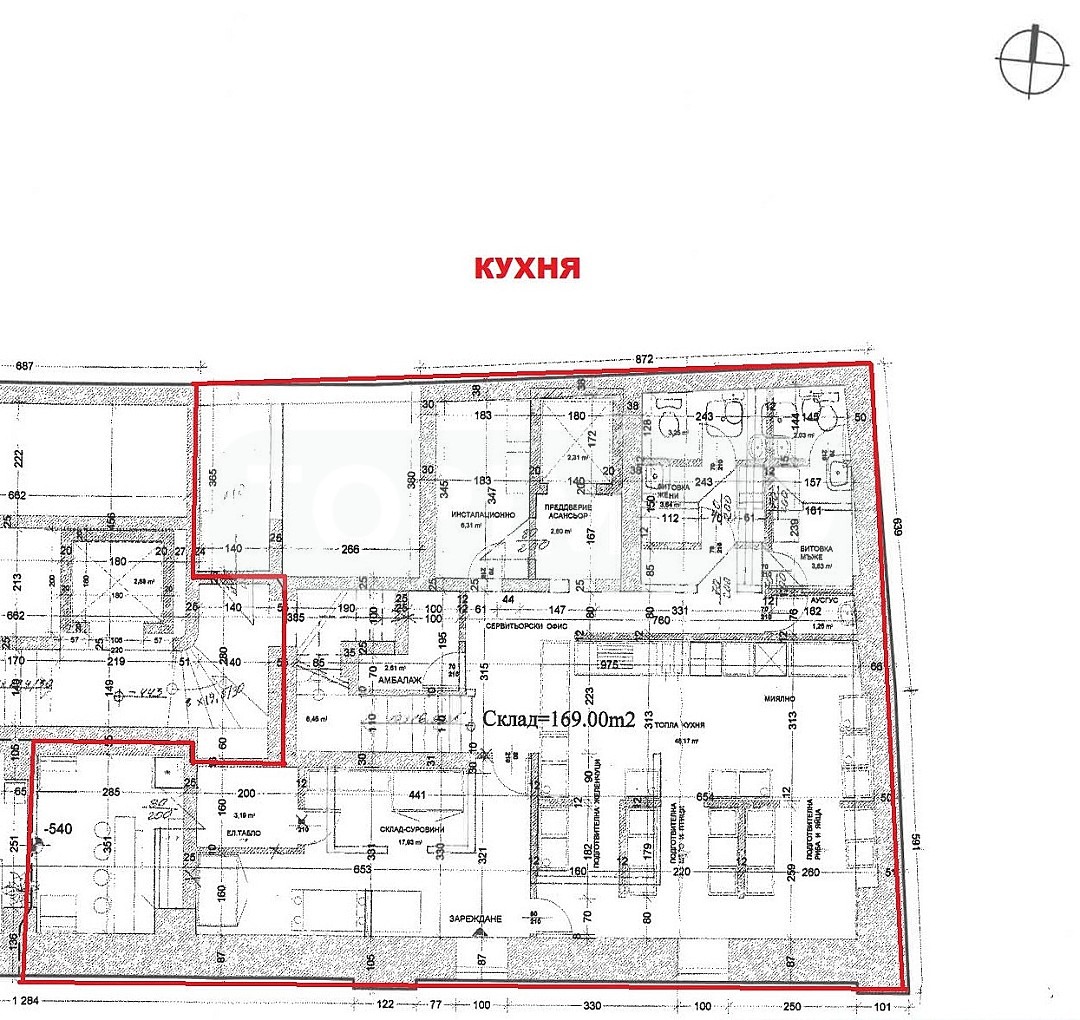 На ниво сутерен са разположени кухня, склад за суровини, помещение за амбалаж, битовки, санитарен възел, вход за зареждане.