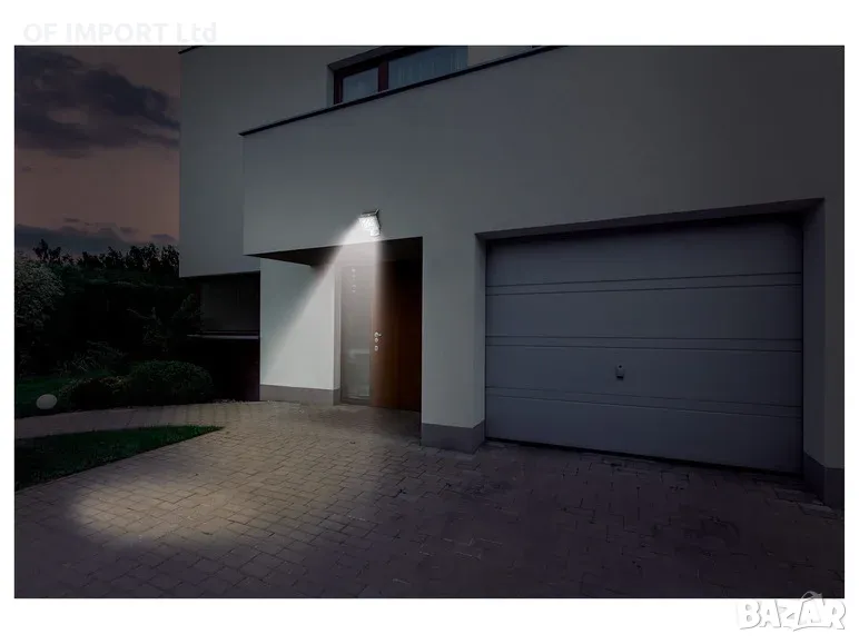 Осветлението е с отделен соларен панел с ок. 2.5м съединителен кабел за оптимален избор на място за поставане и монтаж.