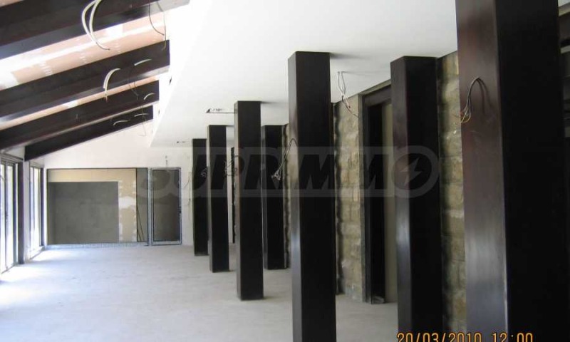 Имотът е с РЗП 9597 кв. м разгърнати на три етажа разположен в голям парцел земя 7900 кв.м. Самата сграда е на акт 14. Имотът е подходящ за завършване както за хотел, а така също и за апартаменти. Хотелския комплекс разполага с 22 единични стаи, 30 двойни стаи, 5 едностайни апартамента, 8 двустайни апартамента, 2 тристайни апартамента и един служебен апартамент. Имотът разполага със СПА зона и басейн.