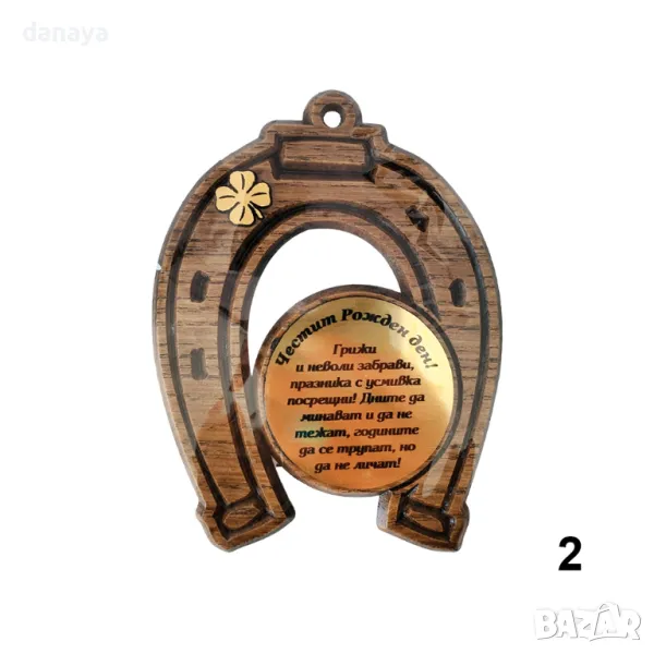 Дървена подкова с пожелание „Честит рожден ден“ е идеалният подарък за всеки рожденик. Тази подкова символизира късмет и благополучие. С прецизно гравирано пожелание, тя не само ще донесе радост на празника, но и ще се превърне в красив и значим сувенир за спомен. Подходяща е за декорация в дома или офиса, добавяйки уют и положителна енергия.