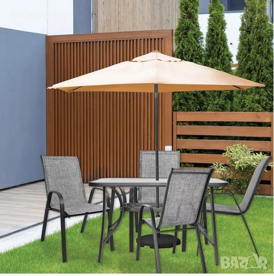 външни пространства и веранда с устойчивa стоманена конструкция в сив