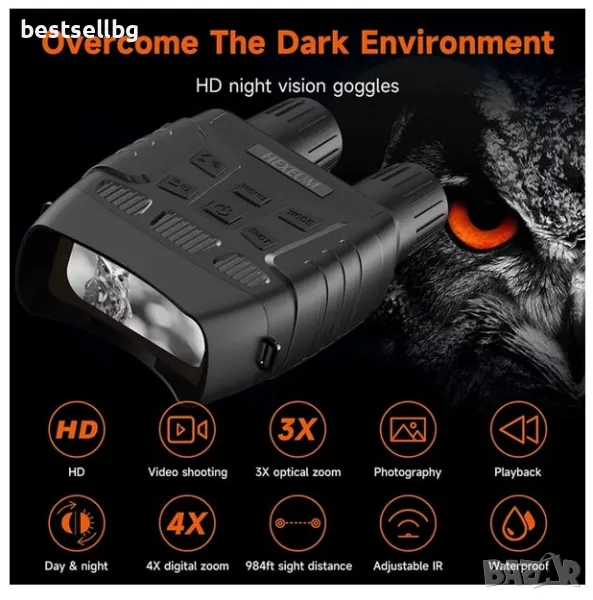 Този високотехнологичен бинокъл е идеален за любителите на природата, ловци, охранители и всички, които се нуждаят от отлично нощно виждане. С мощна инфрачервена система и ясен LCD дисплей, той ви позволява да наблюдавате обекти на големи разстояния дори в пълна тъмнина.