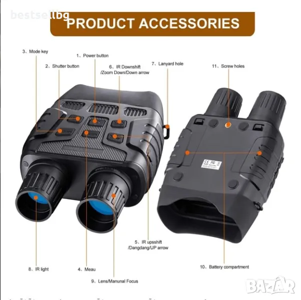 - Може ли да се използва бинокълът през деня? Да, бинокълът може да се използва и през деня, като се изключи инфрачервената подсветка.