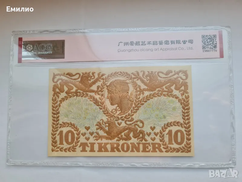 Продавам Сертифицирана Банкнота от Дания 10 КРОНИ от 1943 год. Сертифицирана от ACG с оценка 64 EPQ