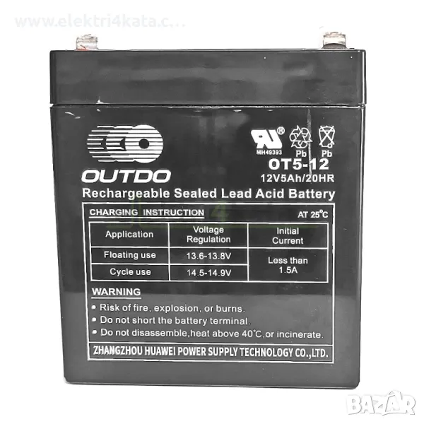 Тягов акумулатор 12V-5Ah OUTDO е от серията Valve Regulated Lead Acid Battery – оловно-киселинни капсуловани необслужваеми акумулатори. 🔌 🔋 Могат да се използват в електрически скутери, електрически велосипеди, инвалидни колички, детски коли и други електрически превозни средства САМО в случай, че разполагат с вградено устройство (защита) против дълбок разряд (под 10.5V). В противен случай тяговият акумулатор ще бъде необратимо повреден.