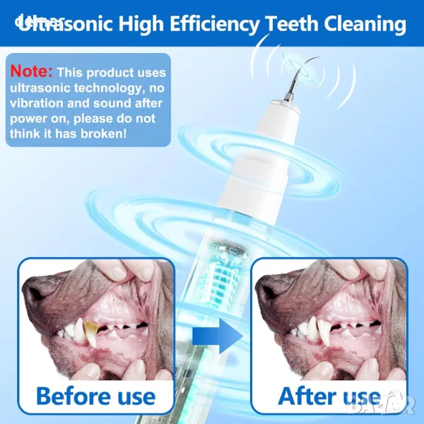Най-новата интелигентна технология за премахване, ефективно и безопасно премахва плаката, зъбния камък от зъбите на домашни любимци без вреда. Устройството предлага пет режима на почистване, включително мек режим за начинаещи, и работи безболезнено, като се активира само при контакт със зъбите. Предлага се с професионален почистващ комплект, включващ четка за зъби, четка за пръсти, орално огледало и две сменяеми почистващи глави за цялостно почистване. Този комплект спестява време и енергия, като намалява необходимостта от чести посещения при зъболекар. USB акумулатор с мощна литиева батерия, зарежда се за 2-3 часа и е IPX6 водоустойчив за безопасна употреба.