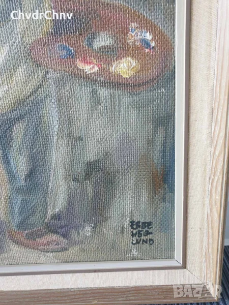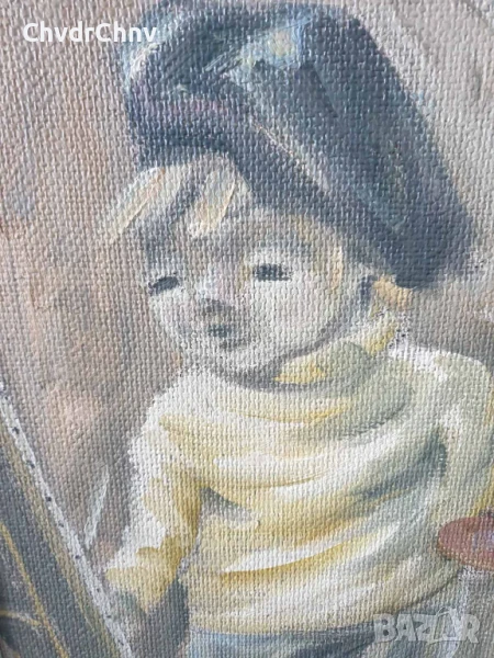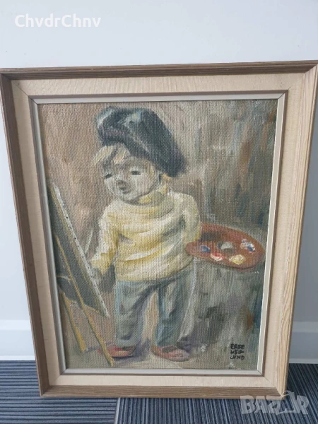 100лв (момченце художник/с рамка) Размери на рамката 53х42 см, подрамката/картината 45х34 см, с клинове в ъглите.
