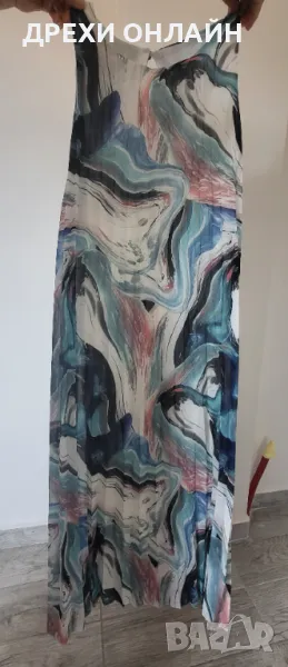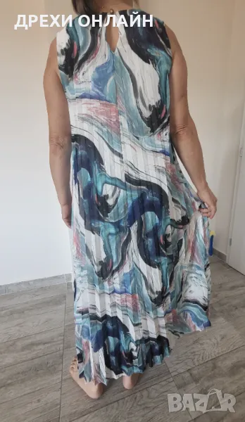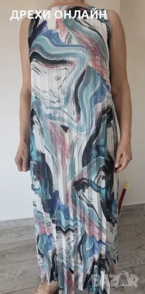 Синя (шарена) рокля плисе, италианско производство, с подплата, изключително удобна, размер универсален (С-М) облечана 2 пъти за повод.