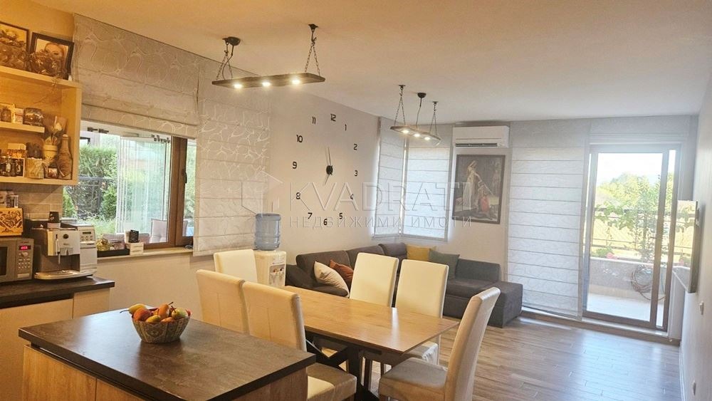 Оферта 4493: Агенция КВАДРАТИ продава с екслузивни права разкошен многостаен апартамент със собствена градина, в един от най- хубавите комплекси в града: Марица Гардънс . Жилището се състои от входен коридор с големи вградени гардероби, много просторен и светъл южен хол с трапезария и кухненски бокс, три самостоятелни спални, две бани с тоалетни / едната към родителската спалня/, перално и складово помещение. Разполага с прекрасен самостоятелен двор от 116 кв.м, с югоизточно изложение и гледка към реката. Градината е частично покрита с осветена пергола с дистанционно управление и е монтирана система за безпрофилно остъкляване. Има достатъчно пространство за игри, малък басейн, както и барбекю за летните вечери. Апартаментът е напълно завършен и обзаведен с качествени материали и красиви мебели. Продава се с цялото налично обзавеждане. Комплексът е много добре поддържан, тих и добре озеленен, денонощно охраняем, с два парка за отдих, два хранителни магазина, с добър транспортен достъп. Близостта до новата база на Пловдивски университет, Езиковите гимназии и МБАЛ Пловдив го прави и добро място за инвестиция. Отличен избор за хора, търсещи по- голям простор и свобода, но същевремнно близо до предимствата на градската среда. За повече инфорация: Тоня Минчева: : 0886758787