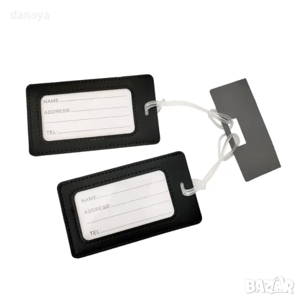 Бадж за идентифициране на куфар с табела за данни. Комплект от 2 броя етикети за куфар в кожен калъф. Предназначени са за надписване на вашите имена, адрес и теленон върху куфари, чанти, раници и др.