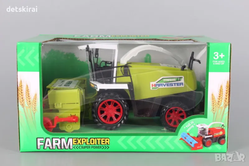 Детски инерционен комбайн, задвижва се на принципа на засилването.