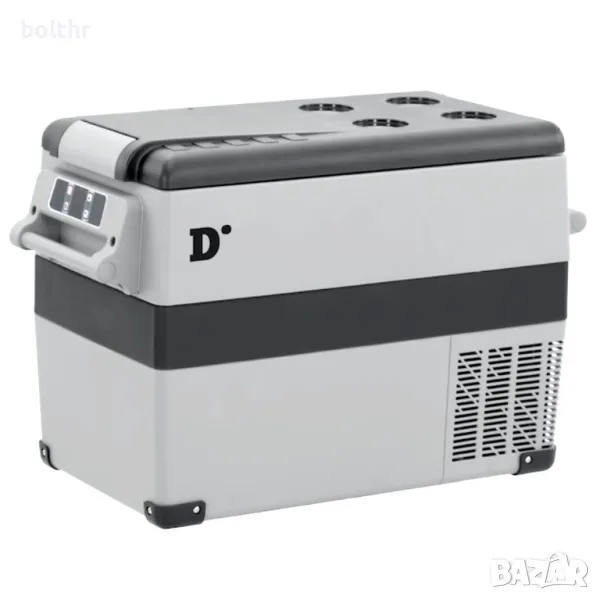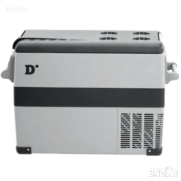 Преносим компресорен хладилник S55. Дигитален дисплей и регулируема температура от -20°C до +20°C. 52 литра. С двоен кабел (запалка и домашен контакт) и захранване 12/24V DC/100-240V. Дисплей за стойност на напрежението с предварителна настройка за безопасност за акумулаторите.