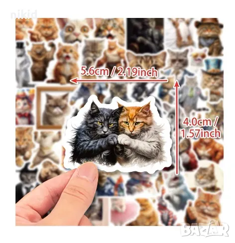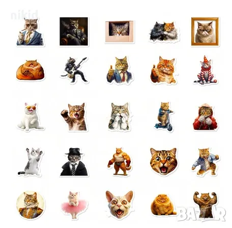 50 бр забавни котета коте котки самозалепващи лепенки стикери украса картонена торта ръчна изработка → Обява 46848893