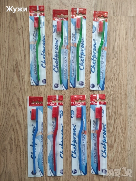 НОВИ четки за зъби ,цена за брой 1 лв. ДИСПЕНСЪР за течен сапун, с вместимост половин литър, цена 2,50 лв. СЛЕДВАТ нови четки за зъби цена за брой 1,50 лв. НОВА постелка за баня, цена 5,50 лв. отдолу е с гумички за по-плътно прилепване към плочките ,има и дадени размери. НОВА сапунерка, Има и точното описание ,цена 2, 50 лв.