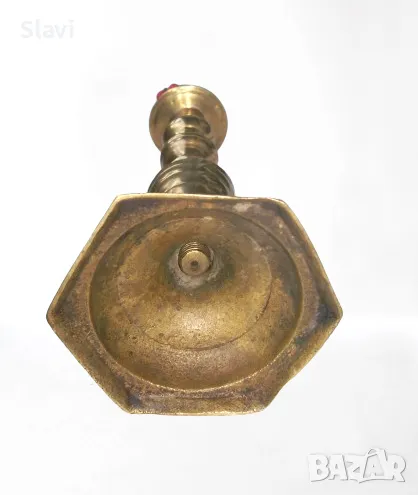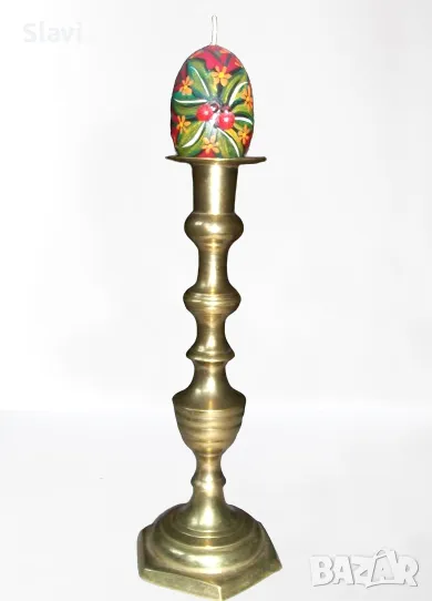 Продавам английски, Викториански стил месингов свещник, 19 век в идеално състояние, без следи от удар и драскотини. Височина 245 мм. (без свещта), диаметър при основата 100 мм. За свещи с диаметър до Ф22 мм. Продава се само при условие на лично предаване в София – Софийски университет. Цена 45 лв.