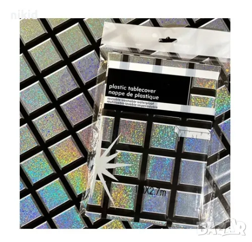 Диско лазер топка тип холограмни квадрати найлонова покривка за парти рожден ден, снимка 1 - Покривки за маси - 46852047 Диско лазер топка тип холограмни квадрати найлонова покривка за парти рожден ден, снимка 2 - Покривки за маси - 46852047 1/2