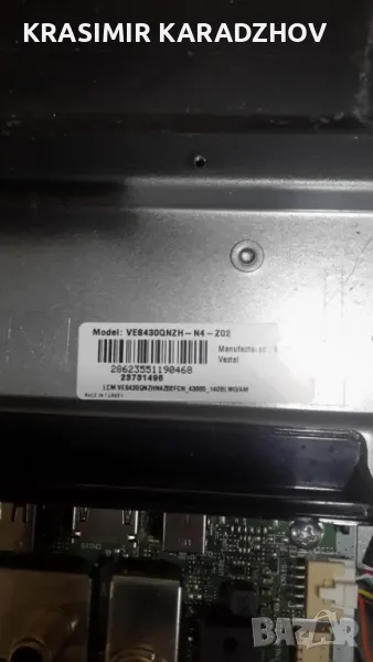 Панел VES 430 QNZH-N4-Z02 със счупена матрица на части Подсветка в комплект с тавата -----------80.00 лв Майн борд 17MB 170 ----------------150.00 лв Захранващ борд 17 IPS 72 --------------90.00 лв T-con PT430GT01-1-C-3 ----------------70.00 лв Тонколони --------------30.00 лв Wi -Fi модул ---------------20.00 лв Бутон -------------------10.00 лв LVDS кабел ------------------10.00 лв Стойка -------------- 40.00 лв Дистанционно оригинал ---------------- 40.00 лв
