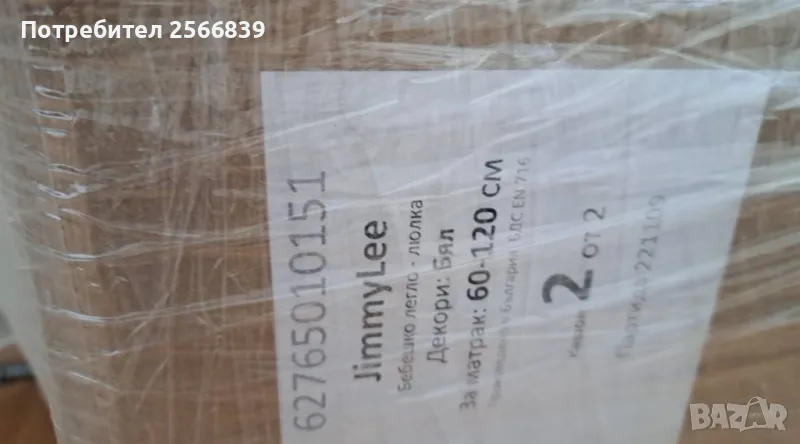 ПРОДАВАМ JIMMYLEE БЕБЕШКО ЛЕГЛО 60X120CM JIMMYLEE 62765010151 С МАТРАК И ПРОТЕРТОР ЗА МАТРАКА.