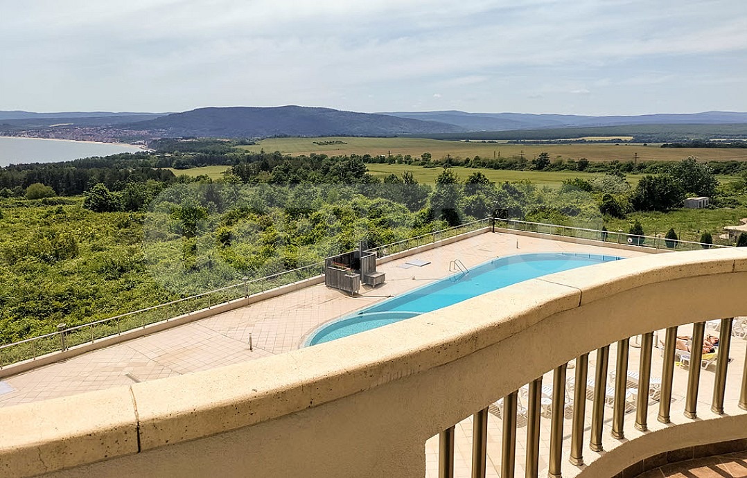 Апартаментът се намира на трети етаж и е с площ от 108 м2. Жилището се състои от входно антре, дневна с кухня, две спални, баня с тоалетна и просторна тераса. От терасата можете да се насладите на релаксираща гледка към Черно море, пейзажа и зелените полета, които заобикалят комплекса.