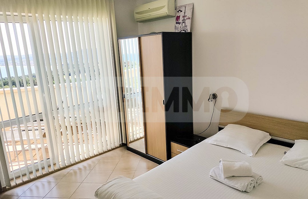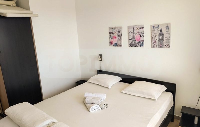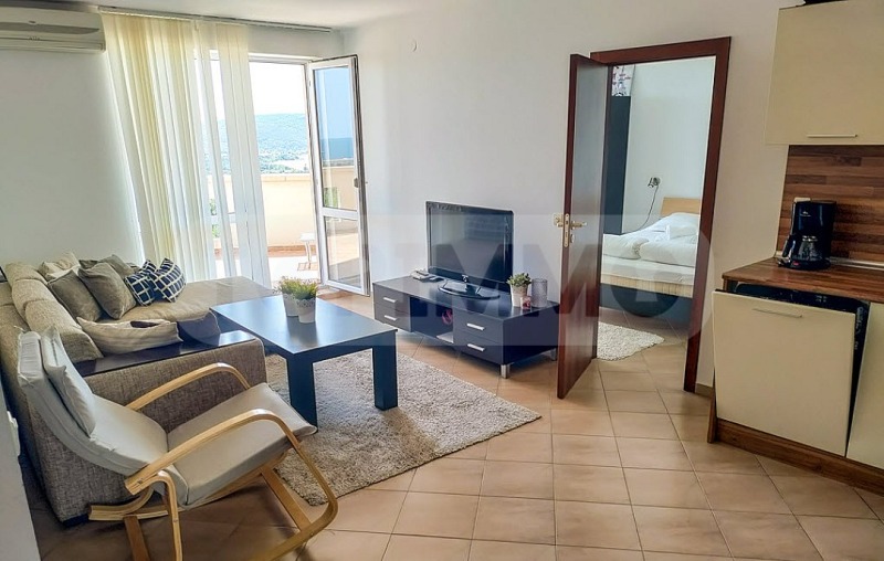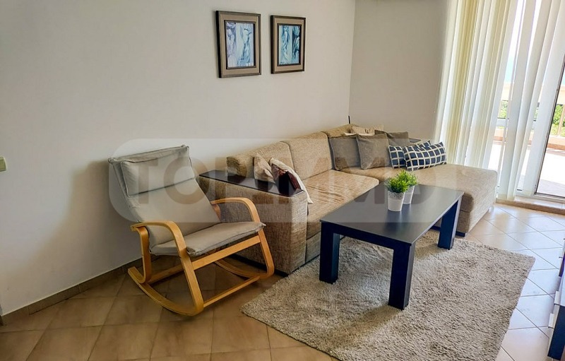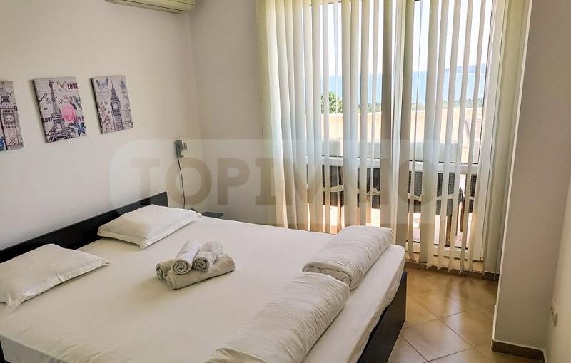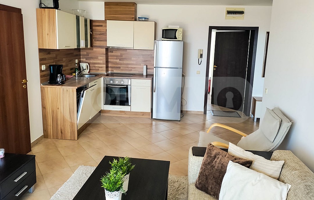 Апартаментът е напълно обзаведен и разполага с теракот на всички подове и теракот на стените в банята, климатик (отопление и охлаждане), както и кухненско обзавеждане, електроуреди (фурна, плот, микровълнова, съдомиялна, хладилник и вентилатор).