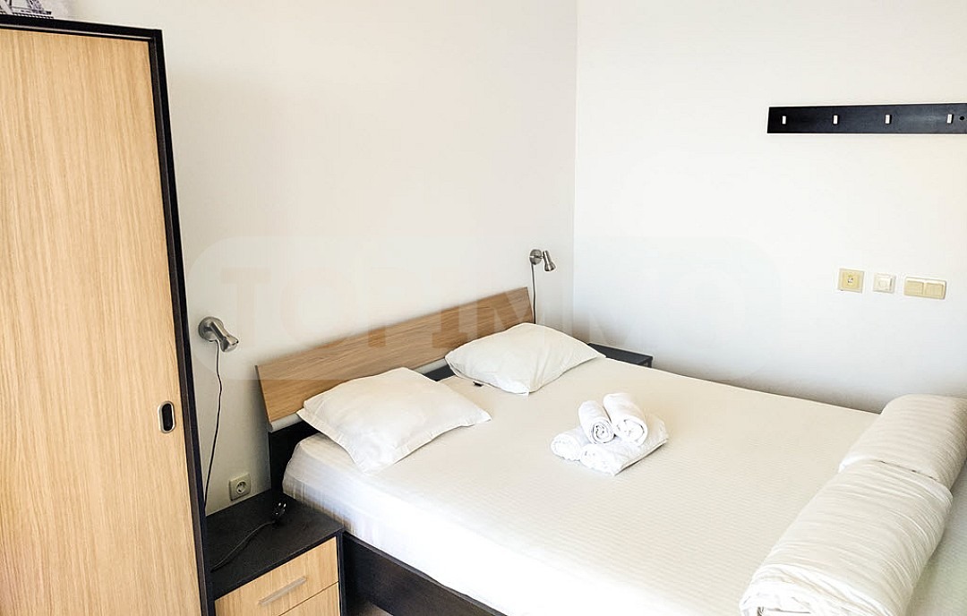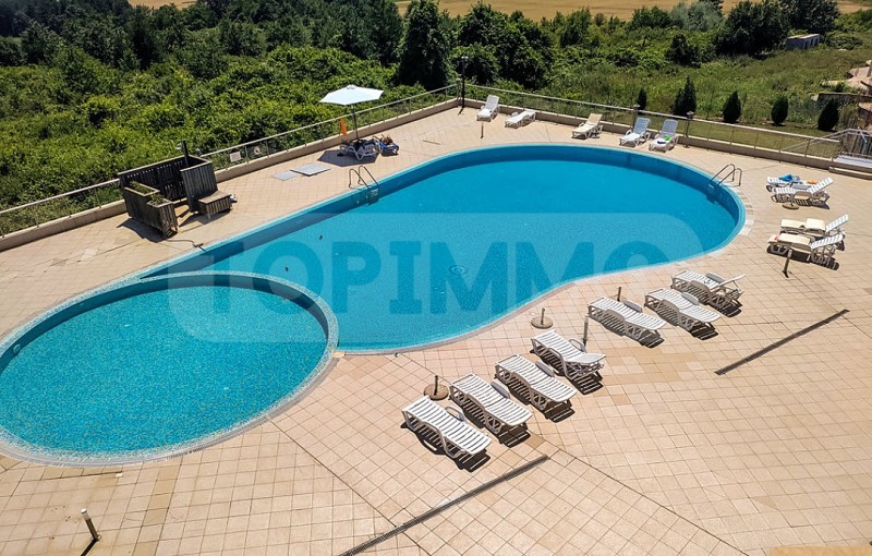 Комплексът разполага с лоби бар, ресторант, открит басейн с шезлонги и безплатен паркинг. Таксата поддръжка за този апартамент е 3 530 лева.