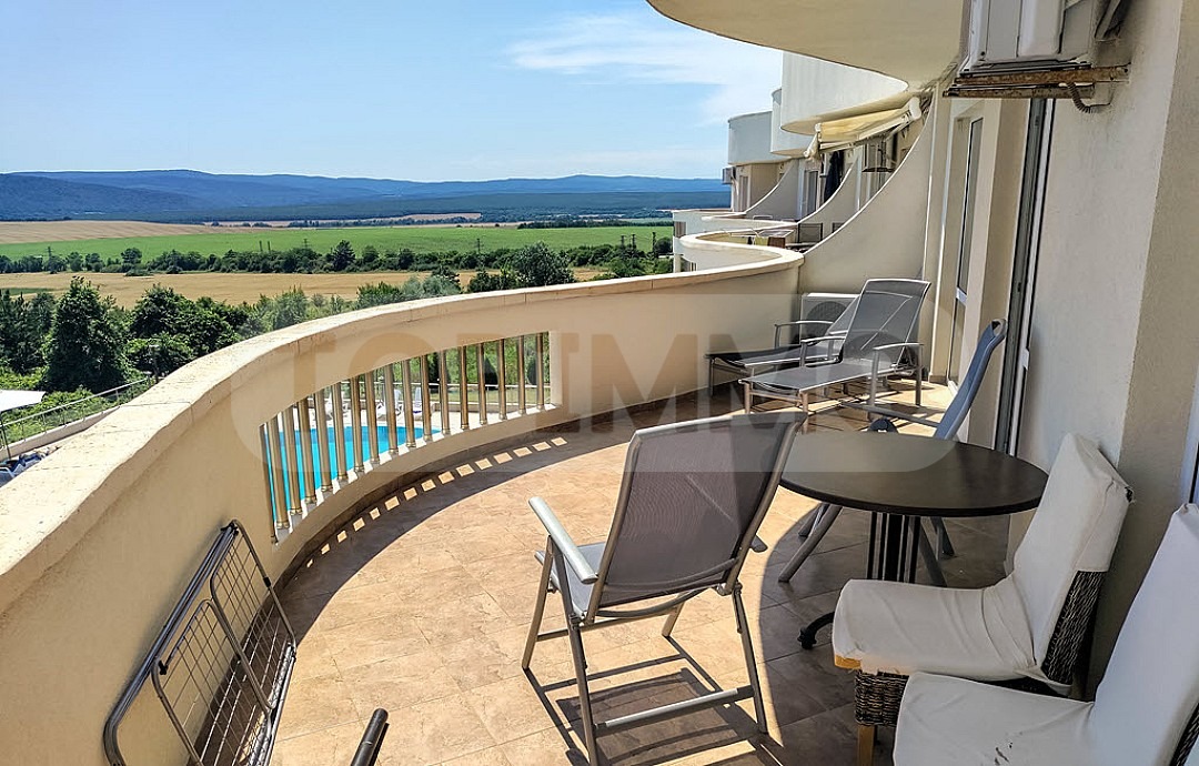 Апартаментът се намира на трети етаж и е с площ от 105,42 м2. Жилището се състои от входно антре, дневна с кухня, две спални и две бани с тоалетна. Към апартамента има просторна тераса. От терасата можете да се насладите на релаксираща гледка към Черно море, пейзажа и зелените полета, които заобикалят комплекса.