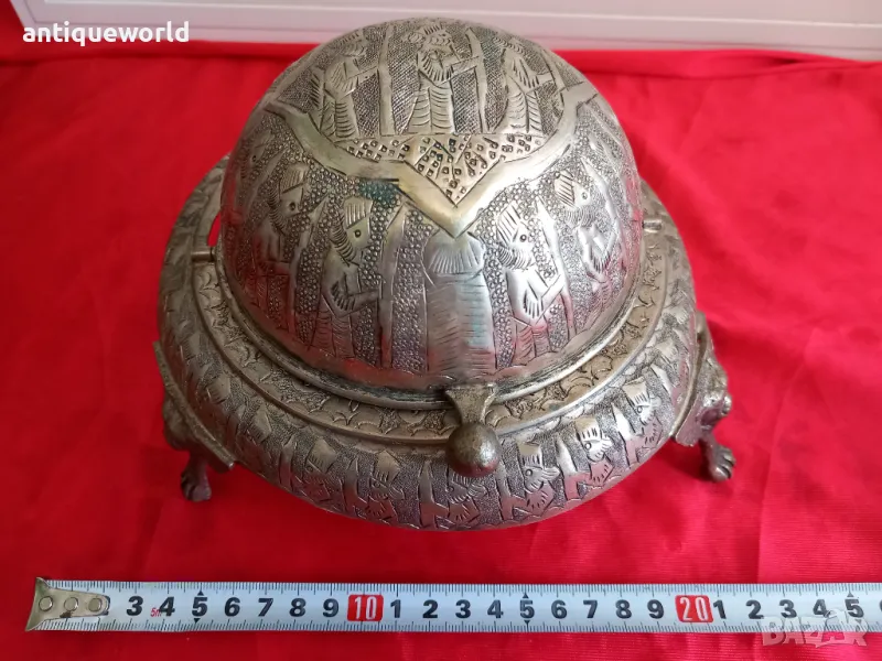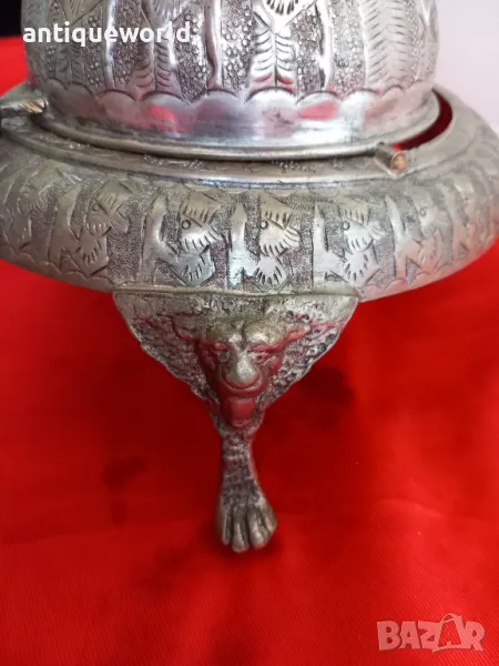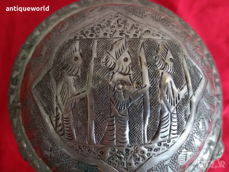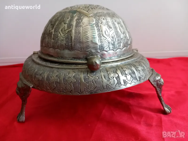 Уникален Много Красив Голям Старинен Посребрен ПЕРСИЙСКИ СЪД за Хайвер, Сладко.Ръчно чукан.