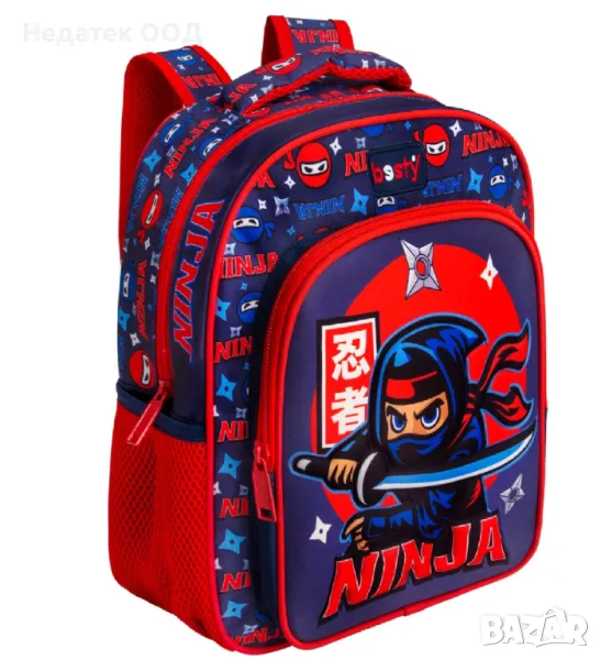 Ученическа раница за момчета, два джоба с 2 странични джоба с мрежа за чанта и 3D мек нинджа дизайн. Има издръжливи ципове и регулируеми презрамки.Побира всички необходими ученически пособия и прави ежедневното пътуване на детето по-лесно и забавно!