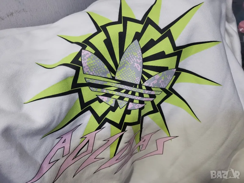 Adidas овърсайз суитчър с качулка и ефектна щампа на гърба.