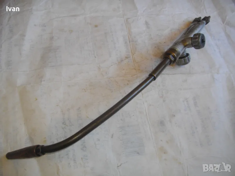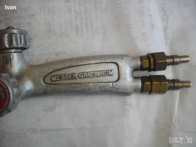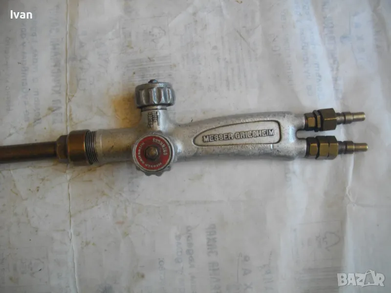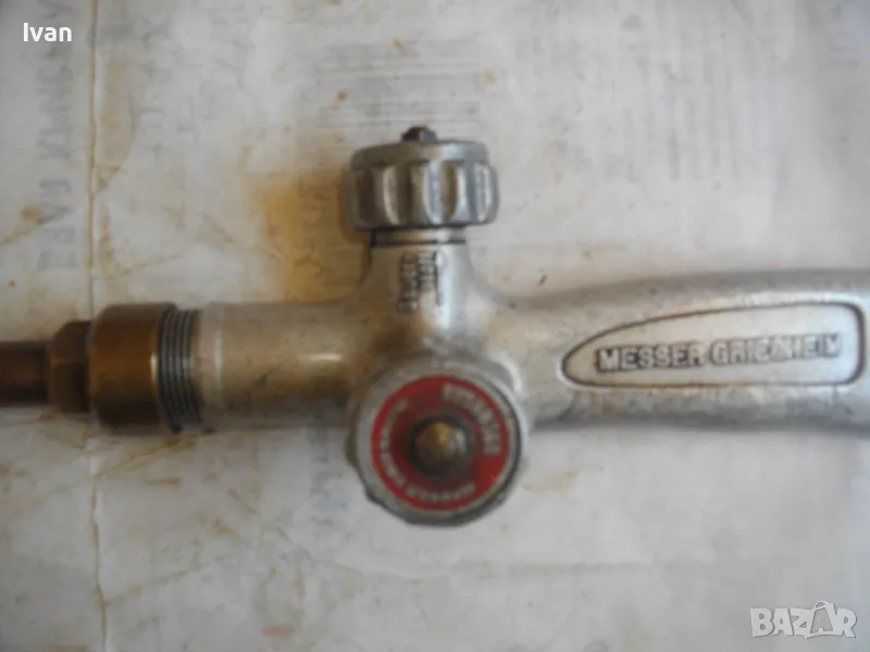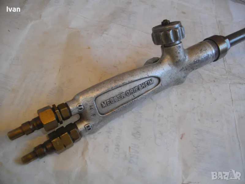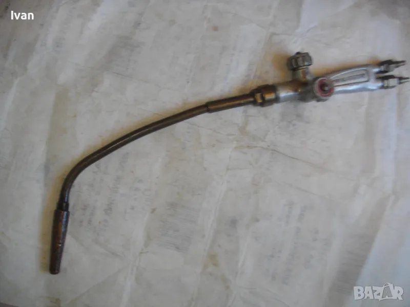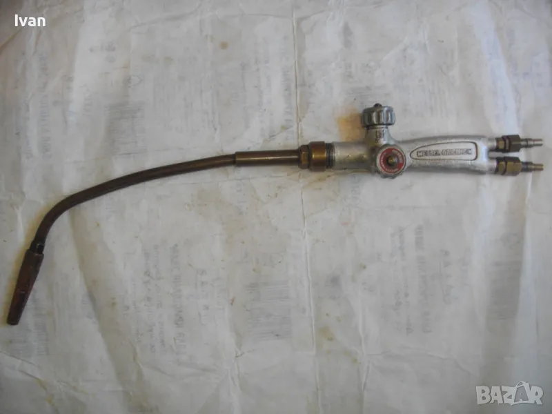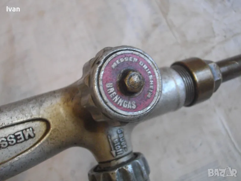 ОПИСАНИЕ на горелка дълга630 мм за оксижен. Ползвана, в ОТЛИЧНО техническо/работно състояние. Марка на дръжката - MESSER GRIESHEIM /една от най-качествените и скъпи в света/. Производство - Нидерландия. Цялостна дължина - 63 см. Дръжка ицзцяло алуминиева, с два бронзови поставени отзад адаптери бърза връзка за скачване с маркучите на оксижен. 2 въртока алуминиеви. Тръба бронз - 38 см, медна голяма контактна дюза - дължина 80 мм с 1 голяма дупка за пламъка. Цена на горелката от обявата - 149 лв.