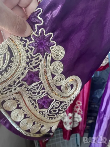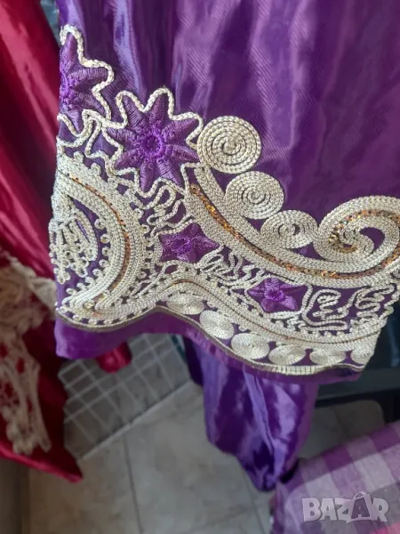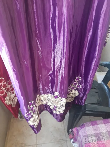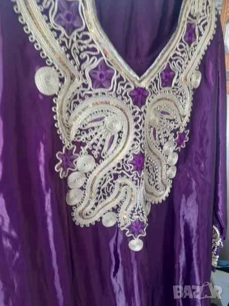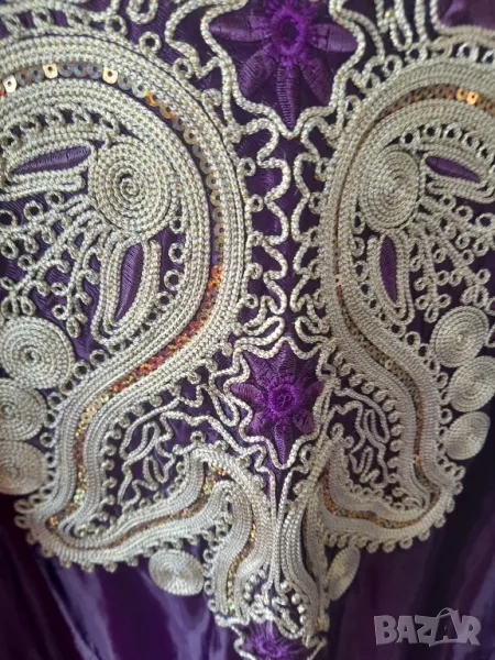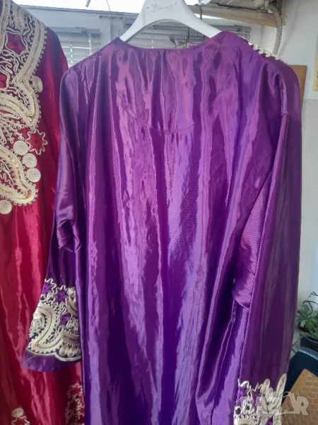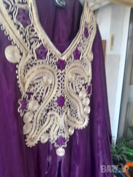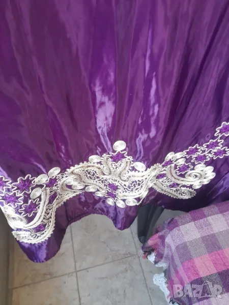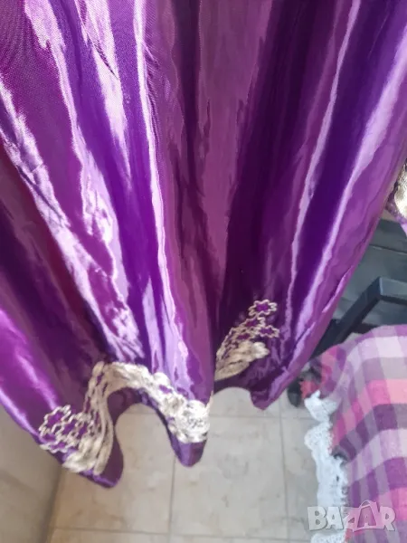 Старинна дамска бродирана Етно Рокля,състояние същата е нова в перфектно състояние видно на снимките, обличана е само за проба,произход България от стари скринове. Размер дъл.135,рамене 45,талия 65 см,ръкав 55 см.
