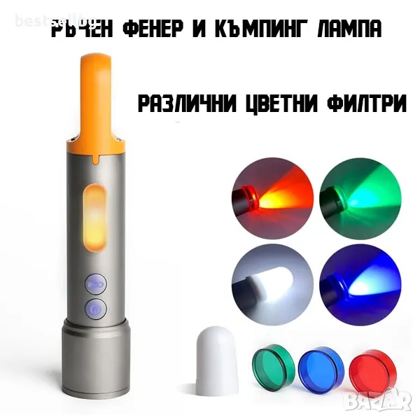 Супер Ярък Мултифункционален Фенер с 4 Филтъра – Твоят Перфектен Спътник за Приключения