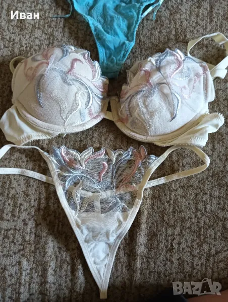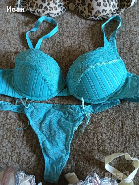 Всичко от снимките за 10 лв. Двата комплекта не са носени, а само изпрани. Тигровия сутиен е слаган, но няма забележки. 70/В