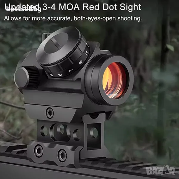 - Висока точност: Червената точка с размер 3-4 MOA осигурява бързо и точно прицелване.