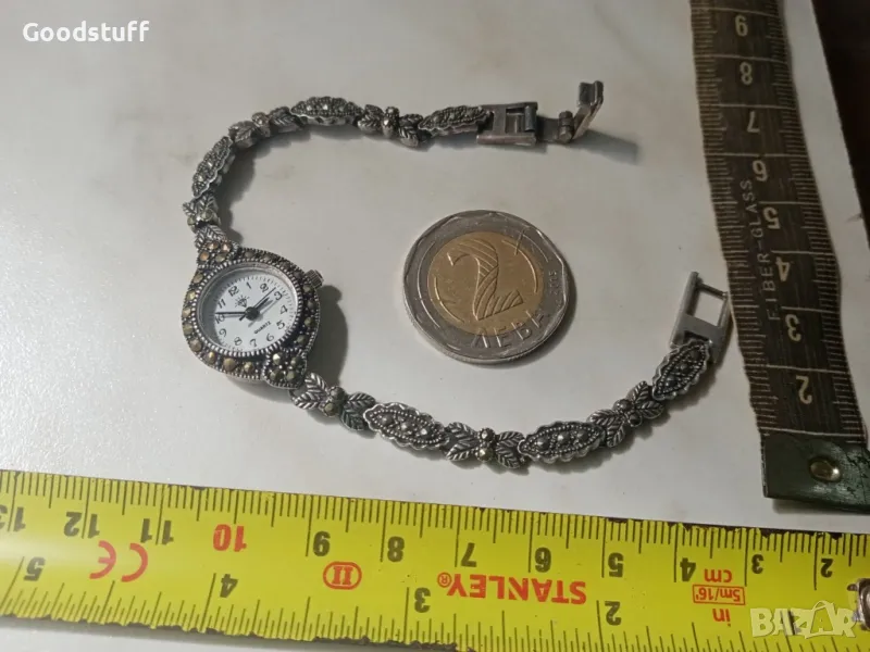 , снимка 2 - Антикварни и старинни предмети - 46857658 Сребро и марказити,маркиран,часовник,от на леля скрина