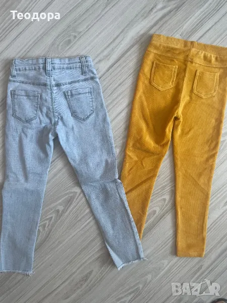 И двете долнища са само изпрани и обличани нито веднъж. Видно е от снимките. Ластични са и лесно се обличат. Размера на клинчето е 5-6 год. ( 110-116 ), а дънките отговарят на неговите мерки. Цената е за двете дрешки.